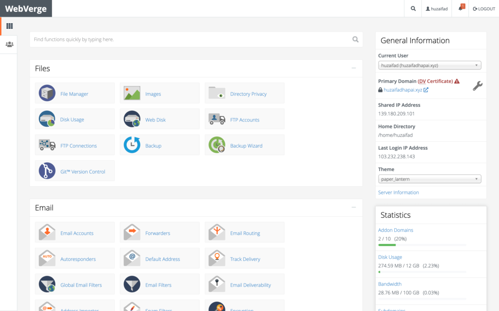 - Login into cPanel